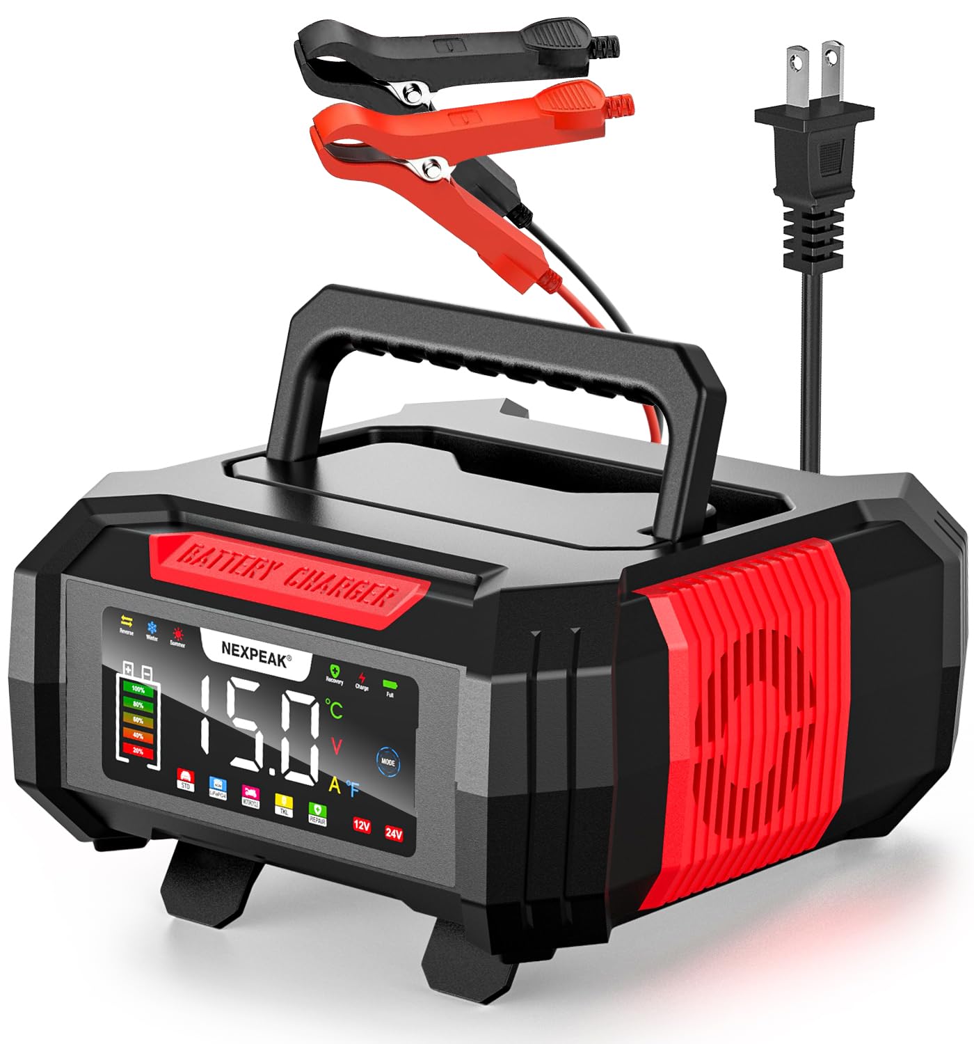 The top pick is the NOCO Genius G3500. It charges most 6V and 12V lead-acid and lithium batteries and has smart modes that prevent overcharging. Its compact size fits in a garage drawer, and the unit is simple to use.